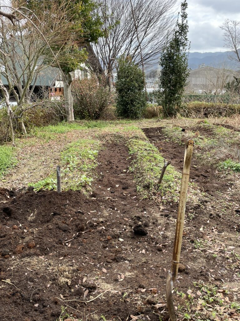 ・ほうれん草、コマツナの播種(有機培土投入)