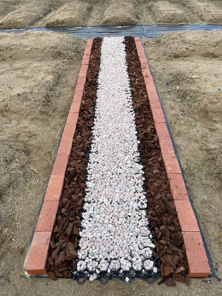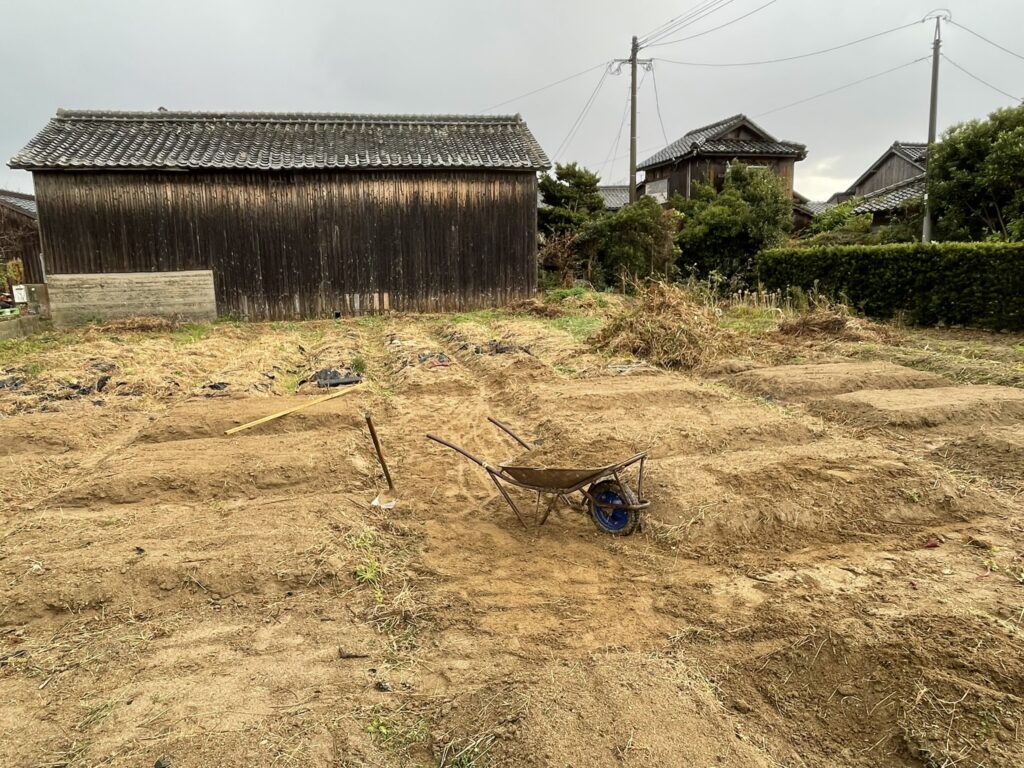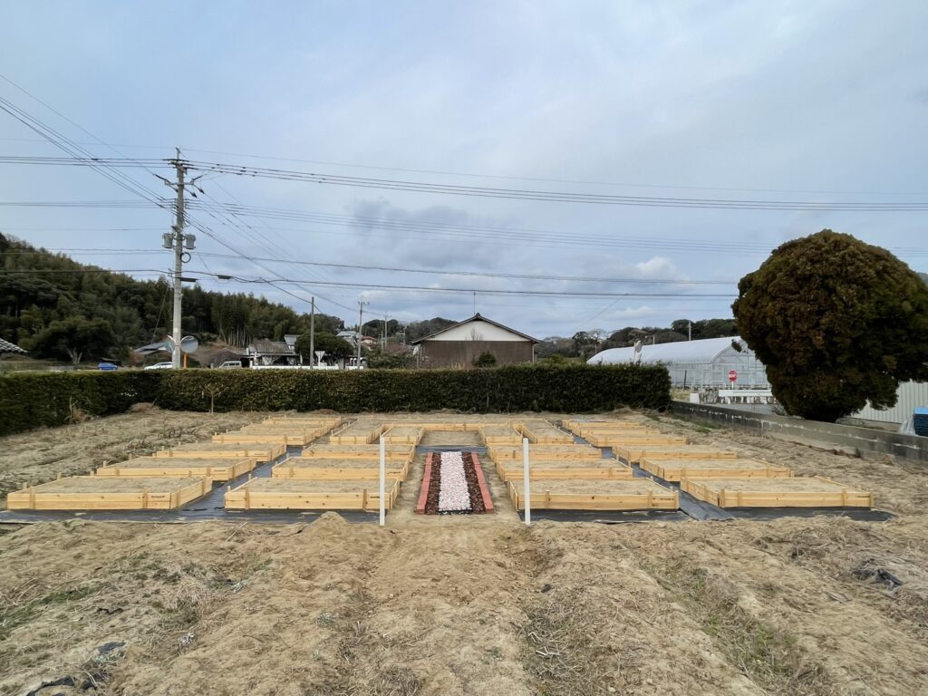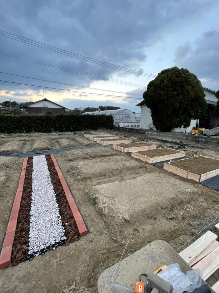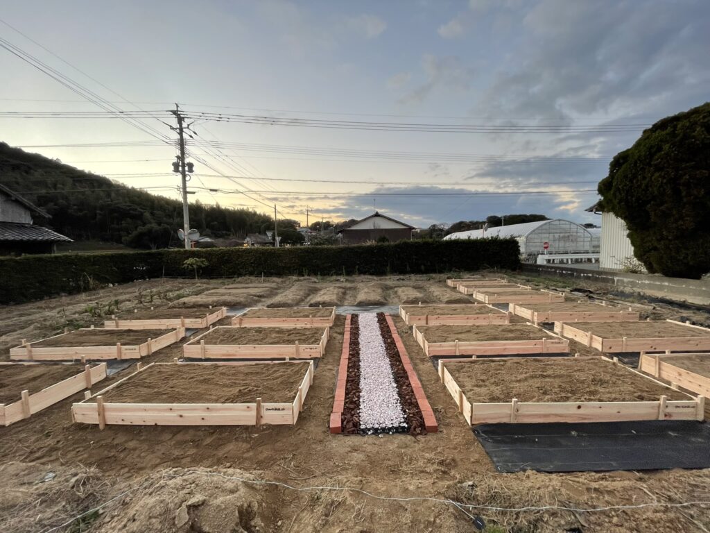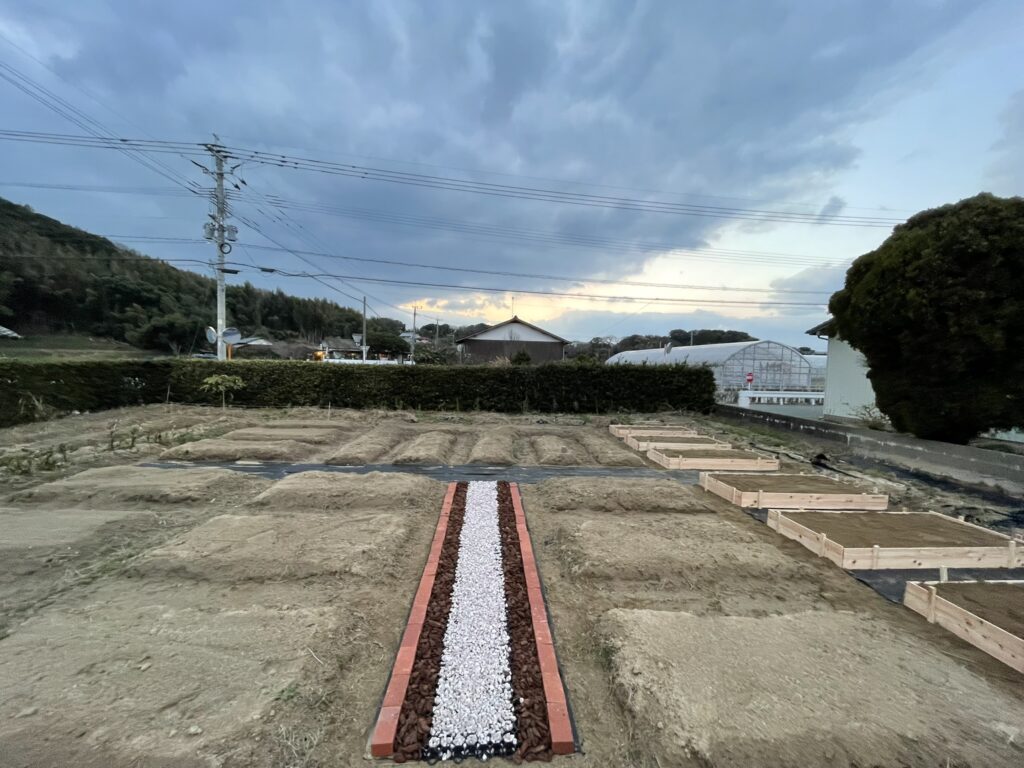 畝を立て直し、野菜やハーブなどを栽培、BBQなどの食事ができるエリアも設置しました。